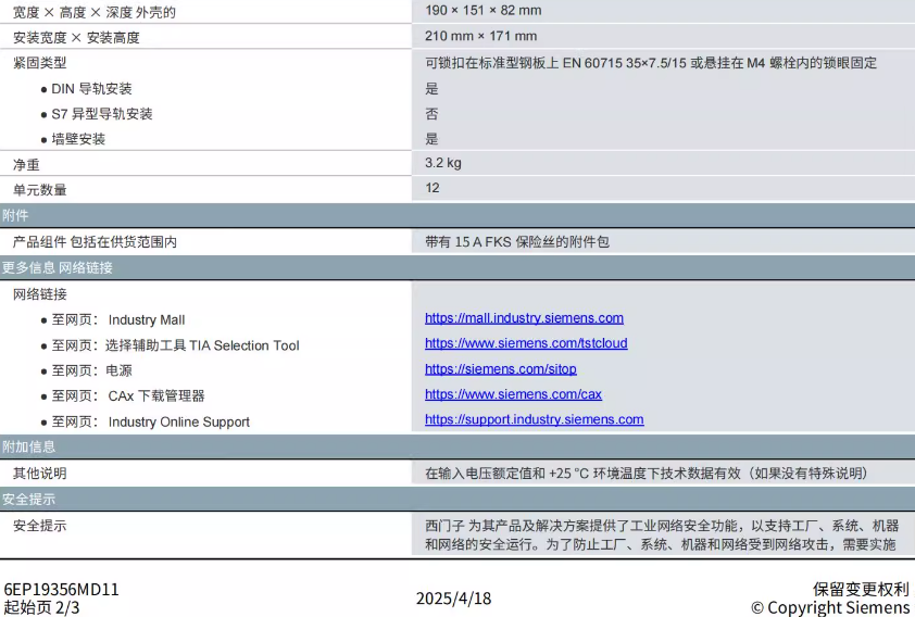 SIEMENS/西门子 SITOP 电池模块 6EP1935-6MD11
