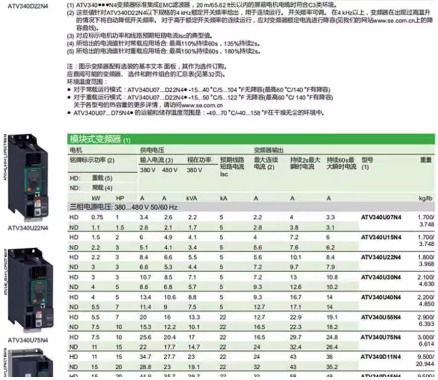 SCHNEIDER/施耐德电气 ATV340系列变频器 ATV340U15N4 1.5kW/个